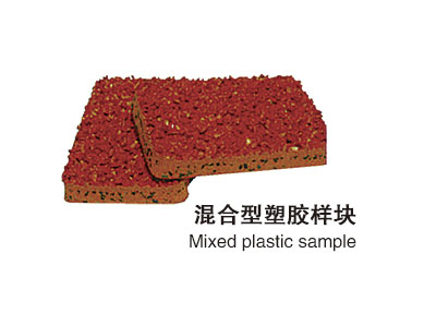 混合型塑膠跑道樣塊透氣型塑膠跑道:是聚氨酯單組份膠水混合黑色橡膠粒攤鋪后,表面采用膠粒EPDM或PU顆粒與純聚氨酯粘結(jié)劑攪勻噴涂;顏色分為鐵紅、草綠,也可根據(jù)用戶需要調(diào)節(jié)。
